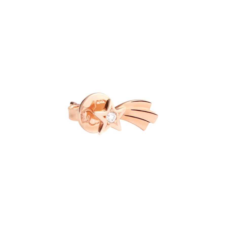 Orecchino stud Stella Cometa in oro rosa 9K con diamante bianco (ct 0,02). Sinistro. Mezzo paio.